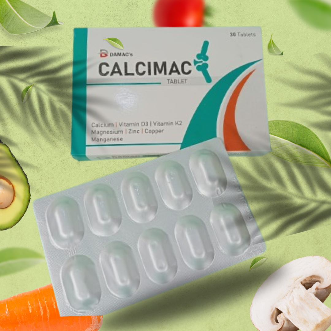The ultimate solution for maintaining healthy bones and supporting overall well-being. Calcimac tablets is a cutting-edge dietary supplement formulated with a potent combination of Calcium, Vitamin D3, Vitamin K2, Magnesium, Zinc, Copper, and Manganese, the essential nutrients renowned for their role in bone health and immunity. Along with the formation of strong bones and teeth, it also reduces the risk of fractures and osteoporosis. Prioritize your bone health and give your body the essential nutrients it needs with Calcimac tablets.