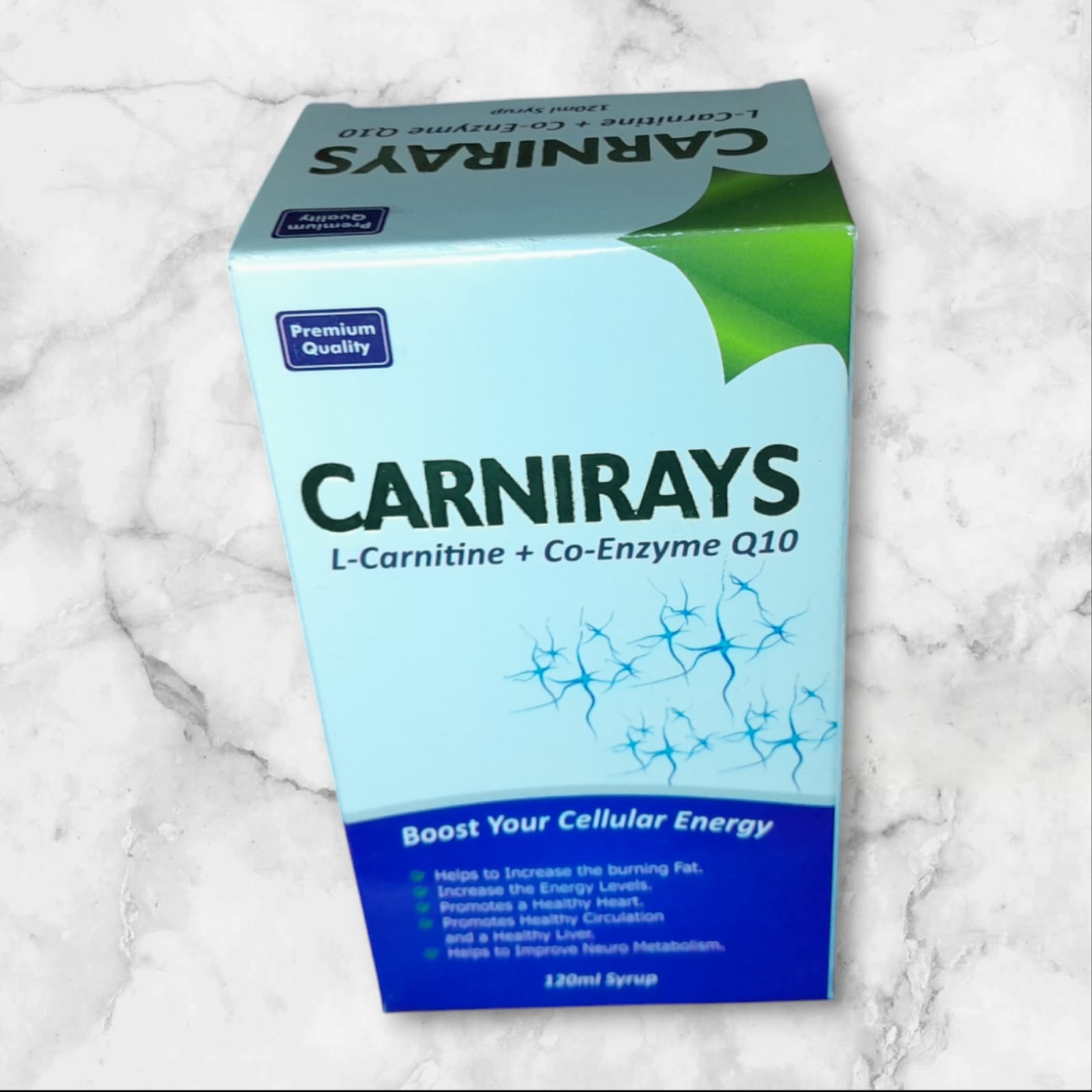 Carnirays Syrup containing L-Carnitine and Co-Enzyme Q10.