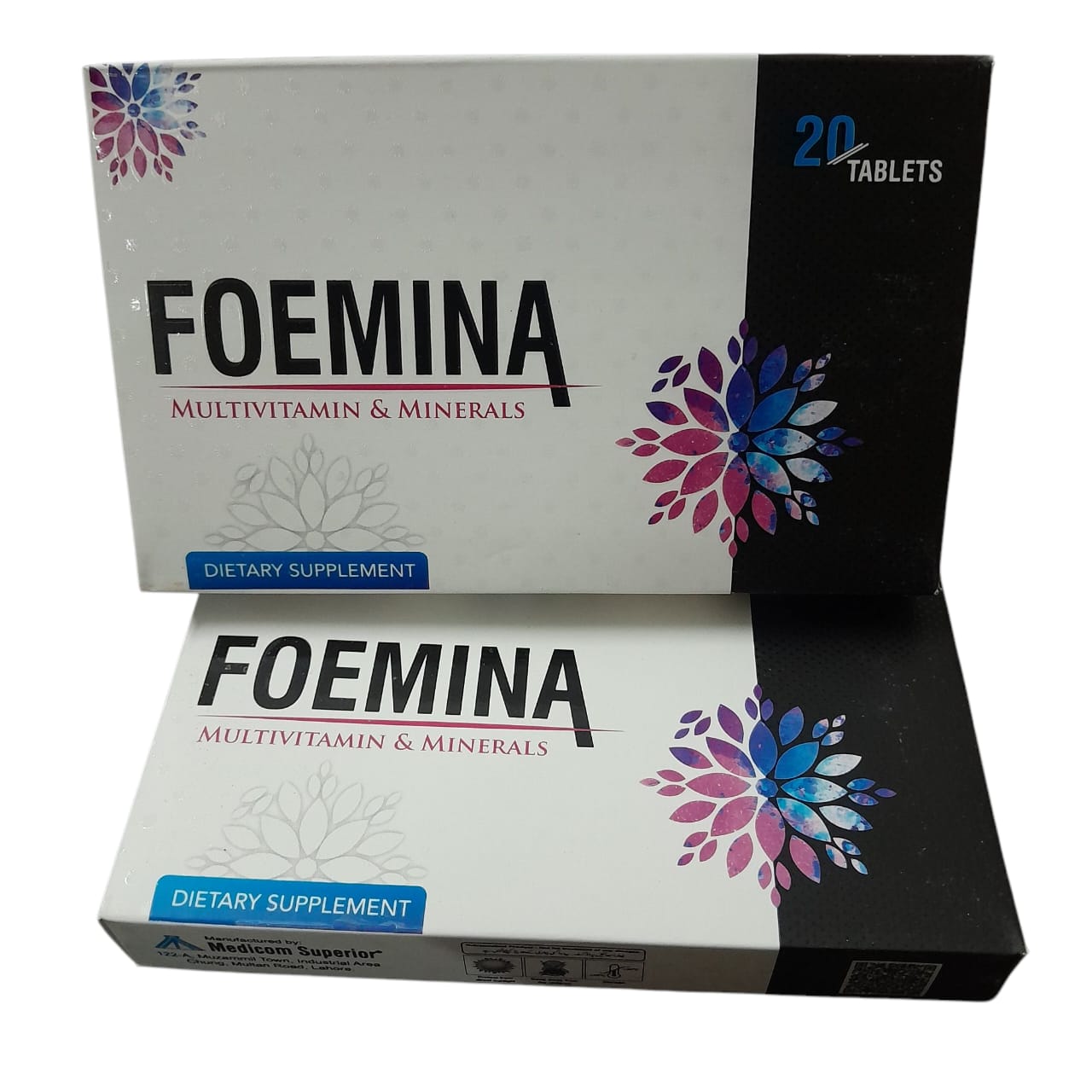 Foemina Tablets provide nutritional support for overall health, fill nutrient gaps in the diet, support energy production and metabolism, promote healthy immune function, support bone health, maintain healthy vision, support cardiovascular health, maintain healthy skin, hair, and nails, and support cognitive function.