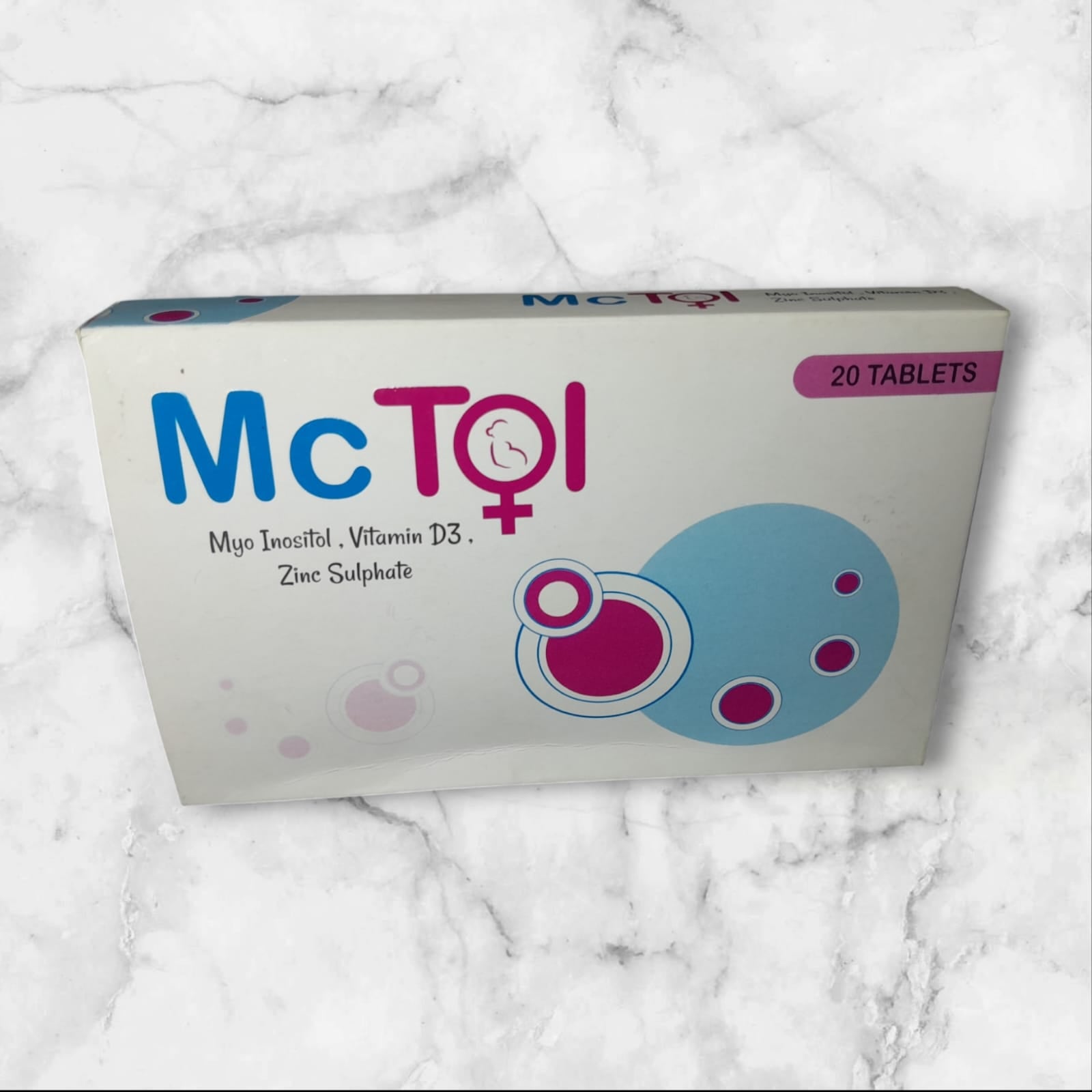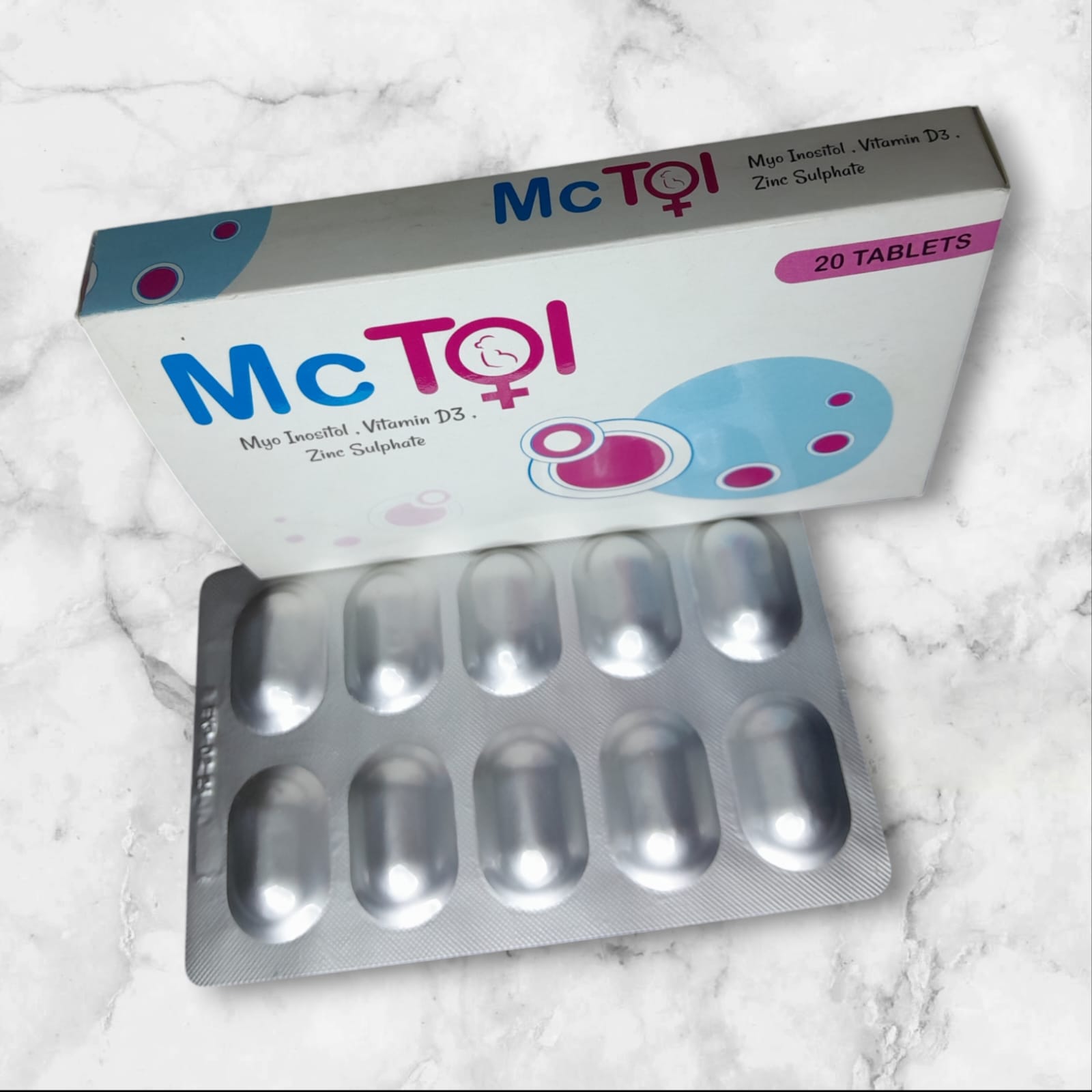 McTol containing Myo Inositol, Vitamin D3, and Zinc Sulphate, designed to support hormonal balance, reproductive health, and overall wellness. They are commonly used in the management of PCOS, to improve insulin sensitivity, enhance fertility, and boost immune function.