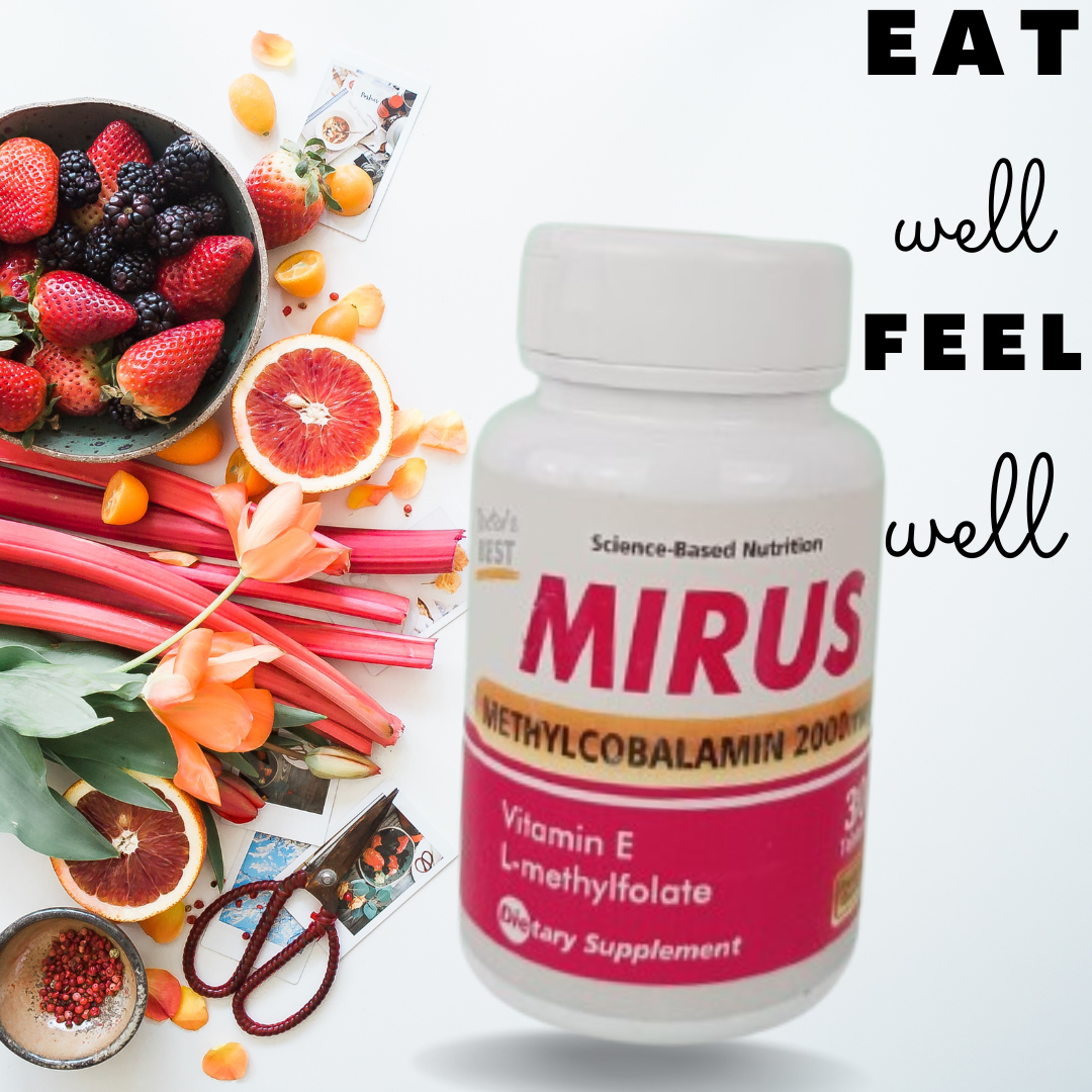 Mirus ایک غذائی ضمیمہ ہے جس میں Methylcobalamin، Vitamin E، اور L-methylfolate شامل ہیں۔ یہ اینٹی آکسیڈینٹ تحفظ فراہم کرتے ہوئے اعصابی صحت، خون کے سرخ خلیوں کی پیداوار، توانائی کے تحول، اور قلبی بہبود کی حمایت کرتا ہے۔ عام طور پر وٹامن کی کمی، نیوروپتی، اور ایسی حالتوں کو سنبھالنے کے لیے استعمال کیا جاتا ہے جن میں میتھیلیشن کو بہتر بنانے کی ضرورت ہوتی ہے۔
