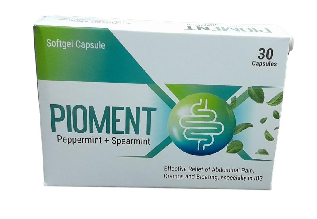 Pioment Capsules, containing peppermint and spearmint oil, are used to relieve abdominal pain, cramps, and bloating, particularly in cases of Irritable Bowel Syndrome (IBS). In Urdu, this can be explained as:
