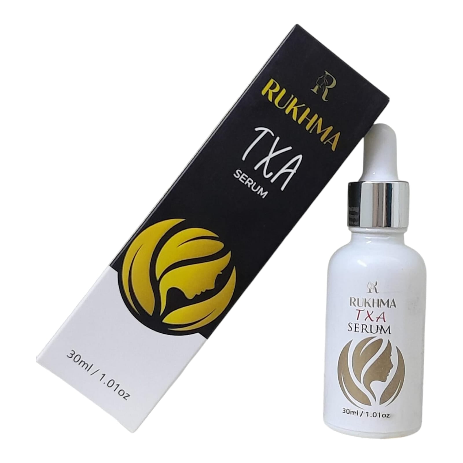 RUKHMA TXA serum targets hyperpigmentation, freckles and dark spots. Tranexamic acid works to actively improve existing skin discolorations and also helps prevent the formation of new dark spots for brighter looking healthy skin.